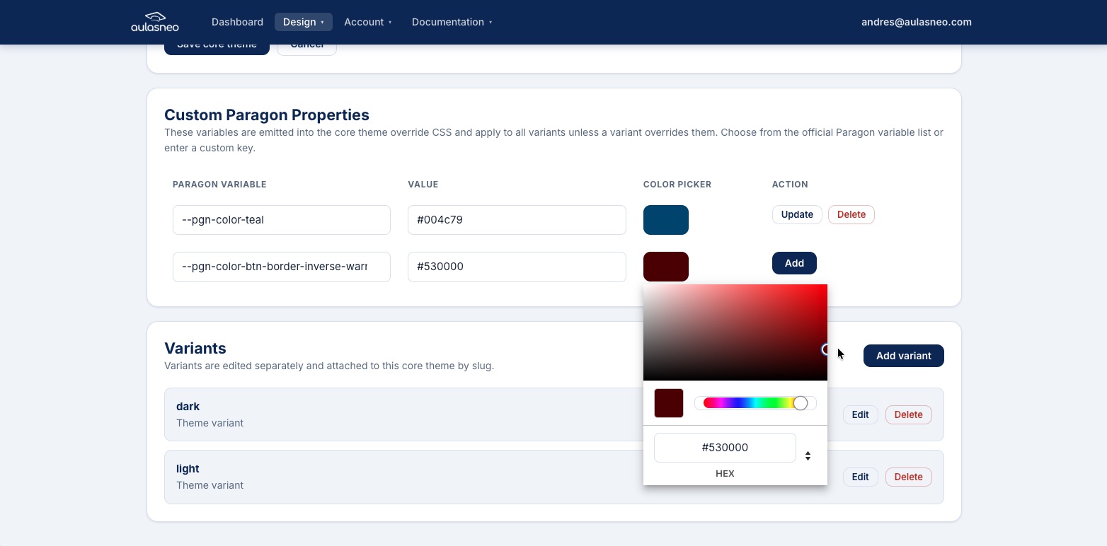 Custom Paragon Properties allow you to override any Paragon CSS custom property