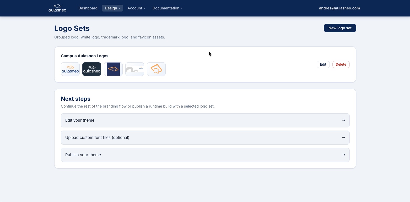 To replace an existing asset, open the logo set editor and upload a new file to the corresponding field. The new file replaces the previous one. There is no need to delete the old file first.